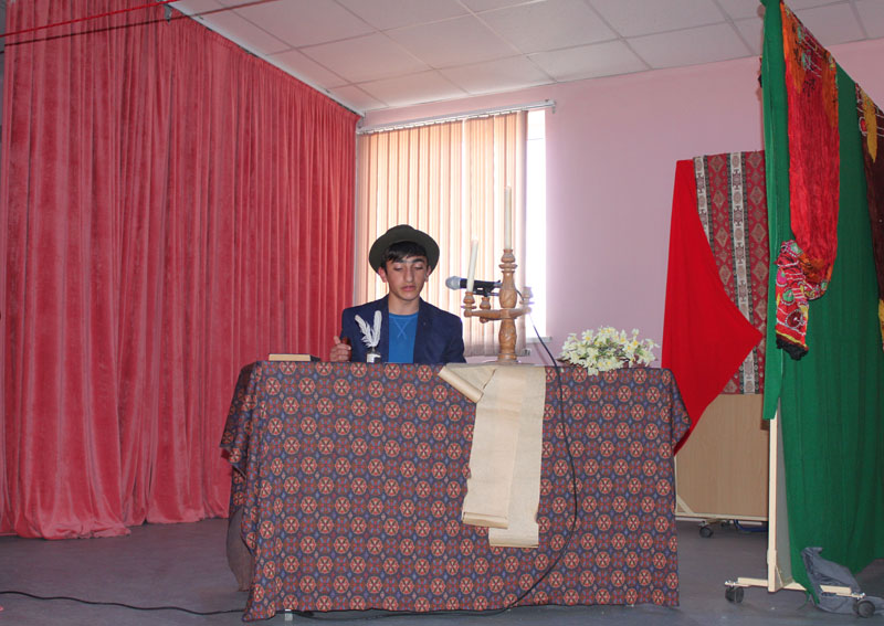 Kamsar. The event brought together many humorists, children from the centre, students, teachers, parents and members of the Writers' Union. The aim of the event was to evaluate the role of humour in the life, to transfer the audience happy mood, to teach students to present satire on the stage in the right way. Students of theatre poetry group presented a performance based on Ler Kamsar's works, have played his character, gave information about the satirist's biography and his reflections. The poems were being read to the music dedicated to the laughter. Along with the event the children from the painting group drew participants' impromptu caricatures, the display of which filled the audience with admiration and laugh.'' There is no life without laugh, it is my vocation, make them laugh by my humour and walk with you to your ranks, ‘the writer concluded his speech with these words. The event ended with clown's funny movements, and by splitting balloons filled with sayings and handing out spring flowers. The participants expressed their satisfaction with the modern day and meaningful event.