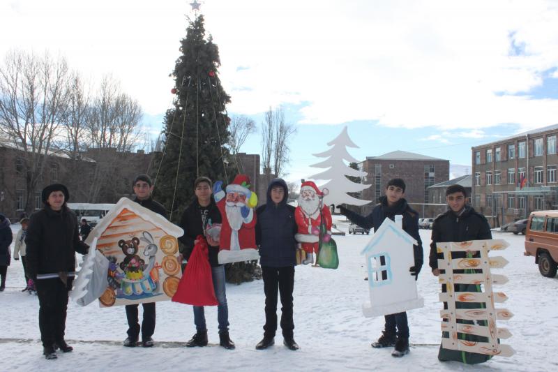The goal of the project was to convey a festive mood to communities, to decorate communities with New Year's Eve decoration, to develop cognitive interest and creative abilities of children, and to instill the desire to "awaken" and preserve nature. Within the framework of the program a fairy tale and sketch contest on the theme "Unfinished Christmas Tale" was announced. The students of "Endanik″center in Gyumri and in the above-mentioned communities created interesting essay characters in line with the selected fairy tale. The teenagers from the communities and educators received their peers with great enthusiasm and warmth. The participants were looking forward to see the outcome of their own thoughts with great enthusiasm and joy. After the division of the group, the teenagers began the process of embodying the heroes of the aforementioned fairy tale. Each group hurried to see the end result. And getting snowy statues, they formed the work and arranged according to the fairy tale. The pupils of the center filled with New Year's ornaments and fairy-tale scenes with their unique wishes.