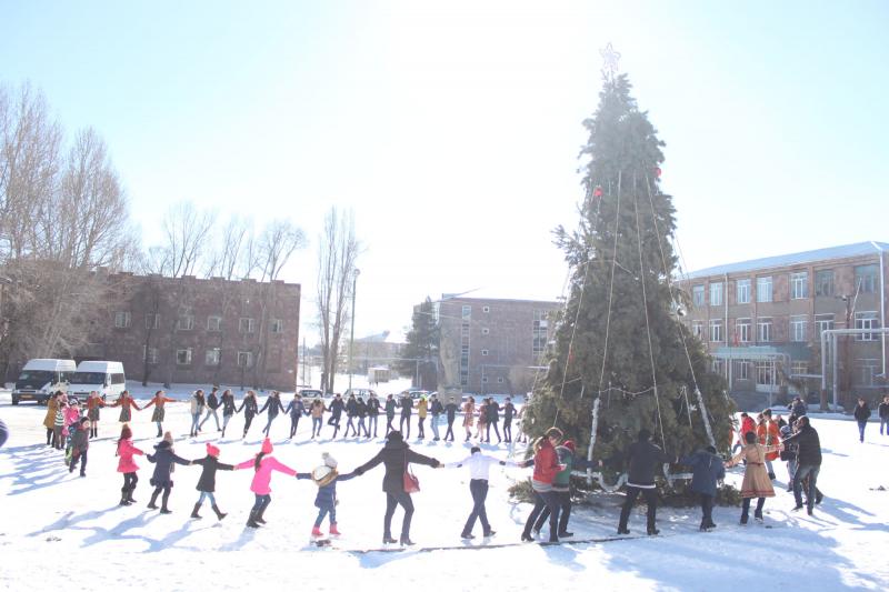 The event titled "Snowy World of Fairy Tales" ended with New Year's song and dance, recitation and a round dance. Following to the formation of healthy lifestyle in the communities, winter sports and traditional games were also been organized in communities. In the communities welcomed that interesting and meaningful initiative and expressed readiness to organize such events by themselves and make it a tradition ahead of Christmas and New Year holidays.