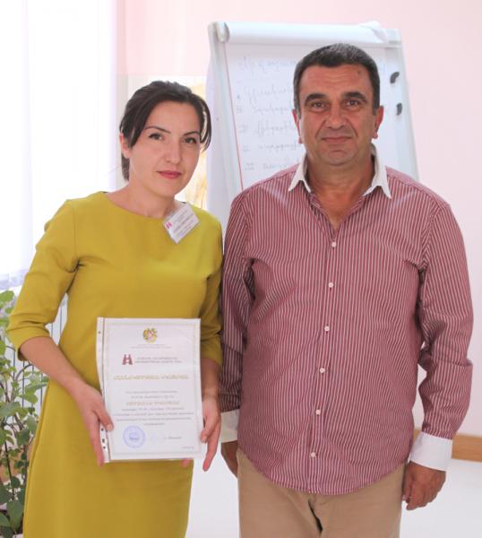 The aim of the educational program was to highlight the role of extracurricular education, to reveal preferred professions in the field of arts and crafts in rural communities, to promote their dissemination and preservation; to direct adolescents in professional orientation, to contribute to the discovery and development of their capacity; to strengthen inter-community ties between educational and cultural institutions. During the second phase of the program organized training courses on extracurricular education took part 20 teachers from Arevshat, Getap, Anushavan, Geghanist, Spandaryan, Karaberd, Dzitankov, Sarakap, Mets Sepasar, Krasar, Ghazanchi, Sizawet, Bavra, Tavshut communities’ cultural - educational centres of Shirak region, from communities of  Akhalkalak and Ninotsminda cultural - educational centres. During the training courses the educators were introduced to the following themes "The importance of adolescents’ extracurricular education and Issues" ,"Study methods of Community Research Complementation and methods for identifying adolescents’ educational needs, and to  the activities of professional groups in the center. Through the group work and using the gained knowledge, the participants raised the issues of their own communities, the necessity of preferred professions teaching and the prospects of its development. The results of the training were summed up in a roundtable discussion with the participation of   "Endanik" center’s directorate and teachers. As a result of joint discussions the teachers shared their impressions and suggestions. Gohar Torosyan, a teacher at Spandaryan's secondary school, concluded his speech with the following words: Thank you for everything. Trainer educator   A. Mkrtchyan’s and Deputy Director S. Petrosyan's work were coordinated and effective. The program will really contribute to the dissemination and preservation of cultural values in the field of national crafts and art in communities; will also contribute to adolescents’
