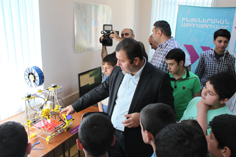 On the 22nd of June in the Ministry of SE of ''Endanik'' Youth Creative Centre with the Enterprise Union Information Technology initiatives and with the support of UCOM, an Engineering Laboratory was opened. The classroom of radio electronics and robotics in the centre was supplemented with the latest technological equipment / high-quality three-dimensional printer, Numerically-controlled drill machines, computers /now and then will be called "Armat" engineering laboratory. The centre hosted the introduction of Union Engineering Laboratory program coordinator S. Vardanyan, the project manager A. Ordian and UCOM Marketing director A. Barseghyan. The guests were greeted with bread and salt by the students, staff, and parents in the yard of the centre. The guests got acquainted with the activity of the centre, particularly in robotics, radio electronics and in the radio communication field. The conductor of robotics group S. Yeremyan also presented the achievements of group's graduate students in the field of the military. The project coordinator S. Vardanyan highlighted the opening of such laboratories in various educational institutions of the country, which aimed to develop students’ interest in information technologies and foster their development. Only the technological country has a future and it is competitive in the world. Today we are establishing the foundations of educational institutions and allows students using their imagination and to develop the leap of their wit in the field of industry. This is the field that requires no raw resources but requires thinking and logic'' marked Mr. Vardanyan in his speech. With the opening of laboratories, we will have powerful engineers, three-dimensional fashion designers that will prepare graduates for work in the labour market, which will enable us to catch up with technological advances in the developed countries walk along the terms of innovations. We believe that these laboratories will soon become our business card around the world'', added UCOM Marketing Director A. Barseghyan. The headmaster of the ''Endanik'' centre A. Minasyan thanked the organizers for the realization of significant investments in technical upgrades, and urged students to make the best use of the opportunity, get familiar with modern information technology innovation, to develop their software skills and use them for the benefit of the state and the people. Students of the centre, as a creator of a new generation of strong and powerful state, promised to expand and deepen their knowledge, to make Armenia one of the leading countries of the world.