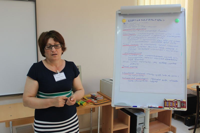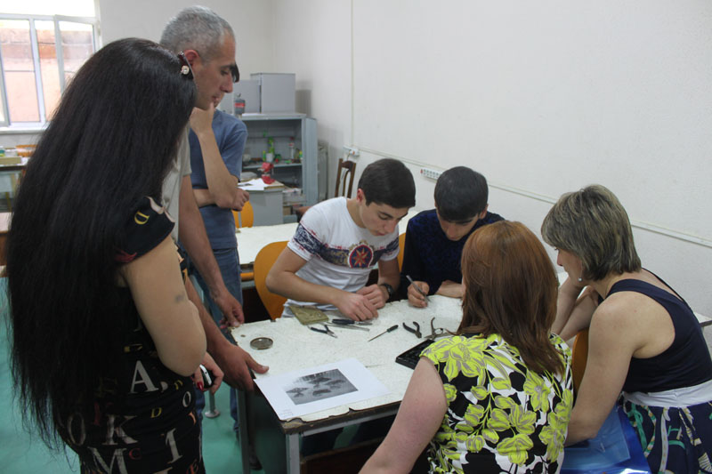 From the 27th of June in the ''Endanik'' Centre launched the first phase of the educational program entitled ‘‘Endanik on the Wheels'’. Nineteen educators attended 5 days training courses from the Armenian mountainous and border communities / Qarakert of the Armavir region, Kamo of Shirak Region, Horom, Nor Kyanq, Shirak, Sarnaghbyur, Saratak/. The aim of the program was to focus on the role of extracurricular education, by organizing training and practical classes to contribute to the activation of the cultural and educational life. The participating teachers were introduced to the important role of education and extracurricular issues, individual and differentiated forms of teaching, activities of the professional groups of the centre examined the implementation of the community research, detection of the methods of adolescents’ educational needs, forms of educational programs and preparation of thematic plans. In addition to theoretical courses, extracurricular education implementation educators took part also in practical courses of different groups of the centre. The program results were summarized during the roundtable discussion, which was attended by the headmaster of ''Endanik" Centre, employees, and educators participating. They have highly appreciated the activities of the Centre for adolescent's employment assurance, education and the identification of gifted students. They welcomed the idea of the project and cooperation in border and remote communities, stressed that the solution to the problem of youth-targeted employment will contribute to the development of communities. The headmaster of ''Endanik'' Centre A. Minasyan congratulated the participants and handed them certificates of participation in training courses. The enthusiasm of the teachers and the desire to make the continuing program long-term and in-depth was great. Their expressed impressions and recommendations about the educational program stated that result was really satisfying, expectations are justified.