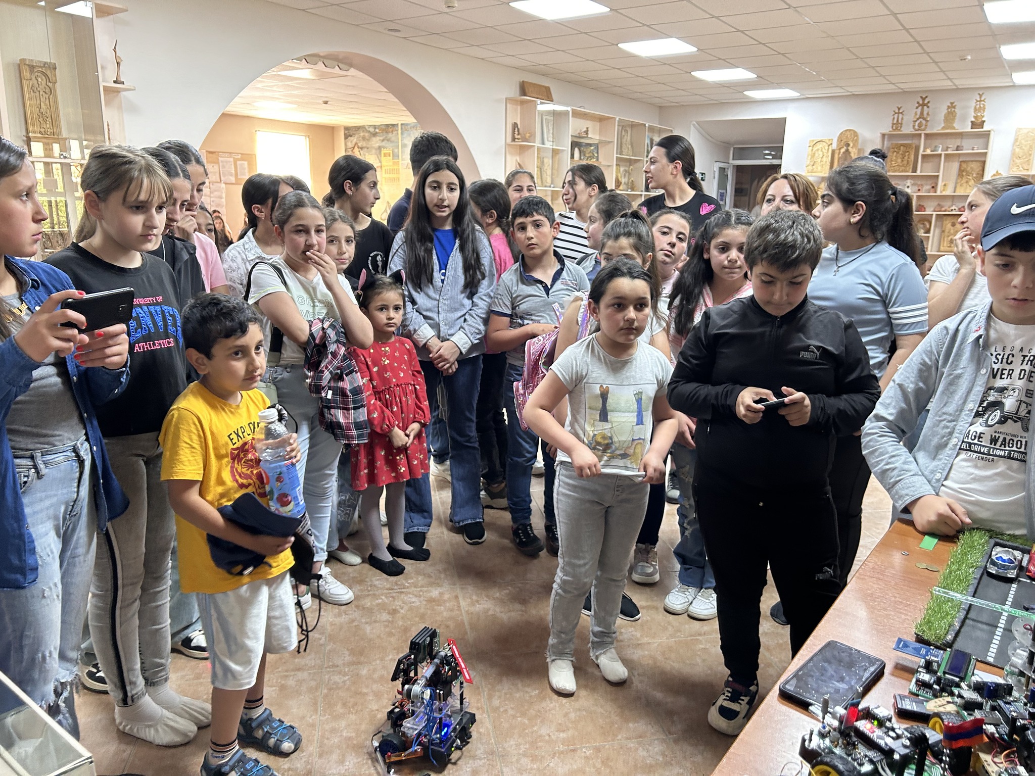 In today's world, robotics is considered one of the most promising and in-demand fields. Almost all advanced countries strive for automation in nearly every sector, minimizing the use of human labor as much as possible. So, who should work in place of humans? The answer is clear—robots. The radio electronics group members of "Endanik" center demonstrated the technical capabilities of the robots they had created. The tech enthusiasts spoke about their contributions and the future prospects in the field of robotics. They showcased robot models developed with new ideas and knowledge, designed for education, industry, and other sectors, presenting their schematics and effective operational mechanisms.