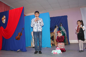 The children of the center decorated the stage harmoniously according to the fest. Each of the curtains had its unique salvations of the colors, the laughing and crying masks on them presented one symbolic picture where was reflected the combination of a real life and theatre.