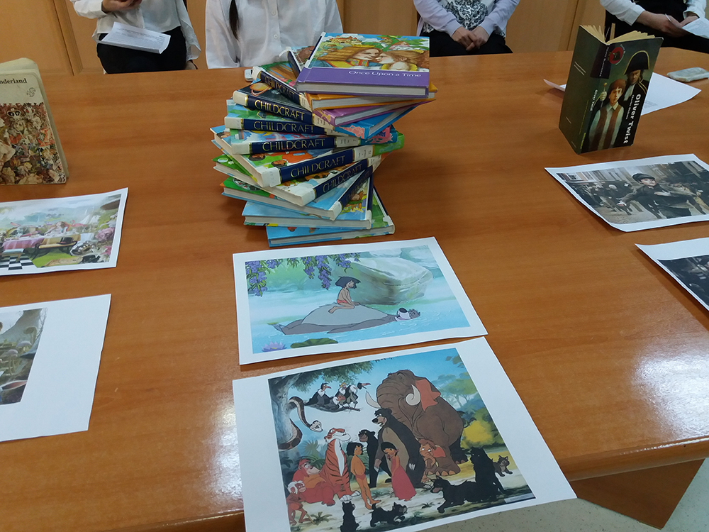 The participants presented details of the life and works of the famous English writers Oscar Wilde, Lewis Carroll, Joseph Rudyard Kipling, Daniel Defoe, Charles Dickens, simultaneously exhibiting the slide show.