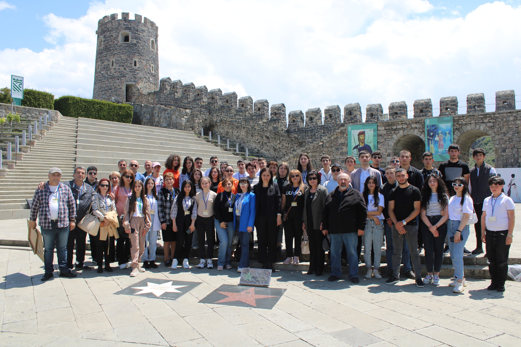 On the legendary Armenian’s birthday, the 100th anniversary of his birth, the educators and students of"Endanik" center, along with the youth and cultural-educational centers of Akhaltsikhe and Akhalkalaki, paid tribute to him at the 13th-century Rabati Fortress in Akhaltsikhe, which is considered a symbol of the city. At the center of the fortress, a Hollywood star shines in honor of the great Armenian. Next to the star, a commemorative stone crafted by "Endanik" center's silversmithing group was also placed as a tribute of gratitude.
