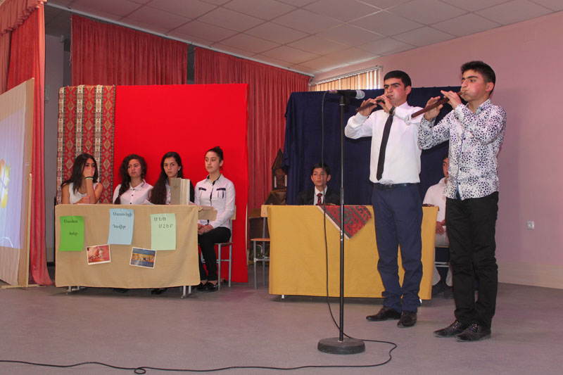 "Duduk and its Music", "Art of Cross Stone, Symbolism and Cross stone Making, "Sasna Tsrer" epic or "David of Sasun" epic. After, listening to the interesting legends about the bread – lavash children watched ''Lavash'' magical animation. Then students of duduk group presented duduk as an ancient instrument. They performed folk songs, followed by the screening of films about Armenian duduk