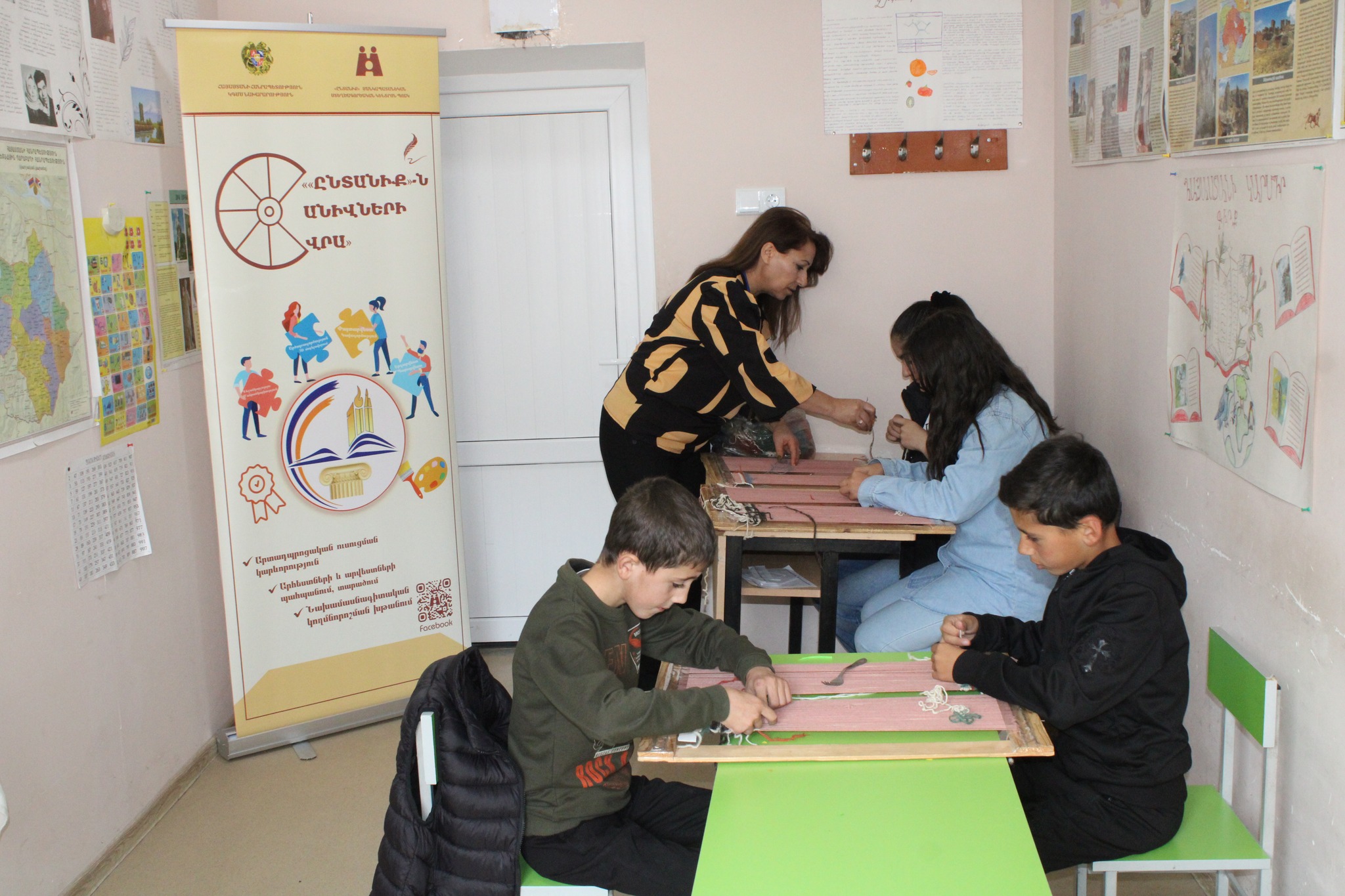 Dans la deuxième étape du programme éducatif et culturel "Entanik sur les roues", les professeurs et les élèves doués des ateliers spécialisés en arts et artisanat nationaux du centre, ont organisé des cours d'orientation professionnelle à l’école secondaire de Toufachène, ONCE, de la région de Chirak.
