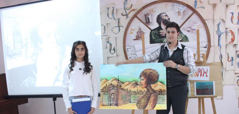 À la fin de l’événement l’élève de l’atelier de peinture Vahram Hambarian qui incarnait le rôle de Carzou, a offert à l’émission ʺEndanikʺ le tableau ʺLe paradis célesteʺ.