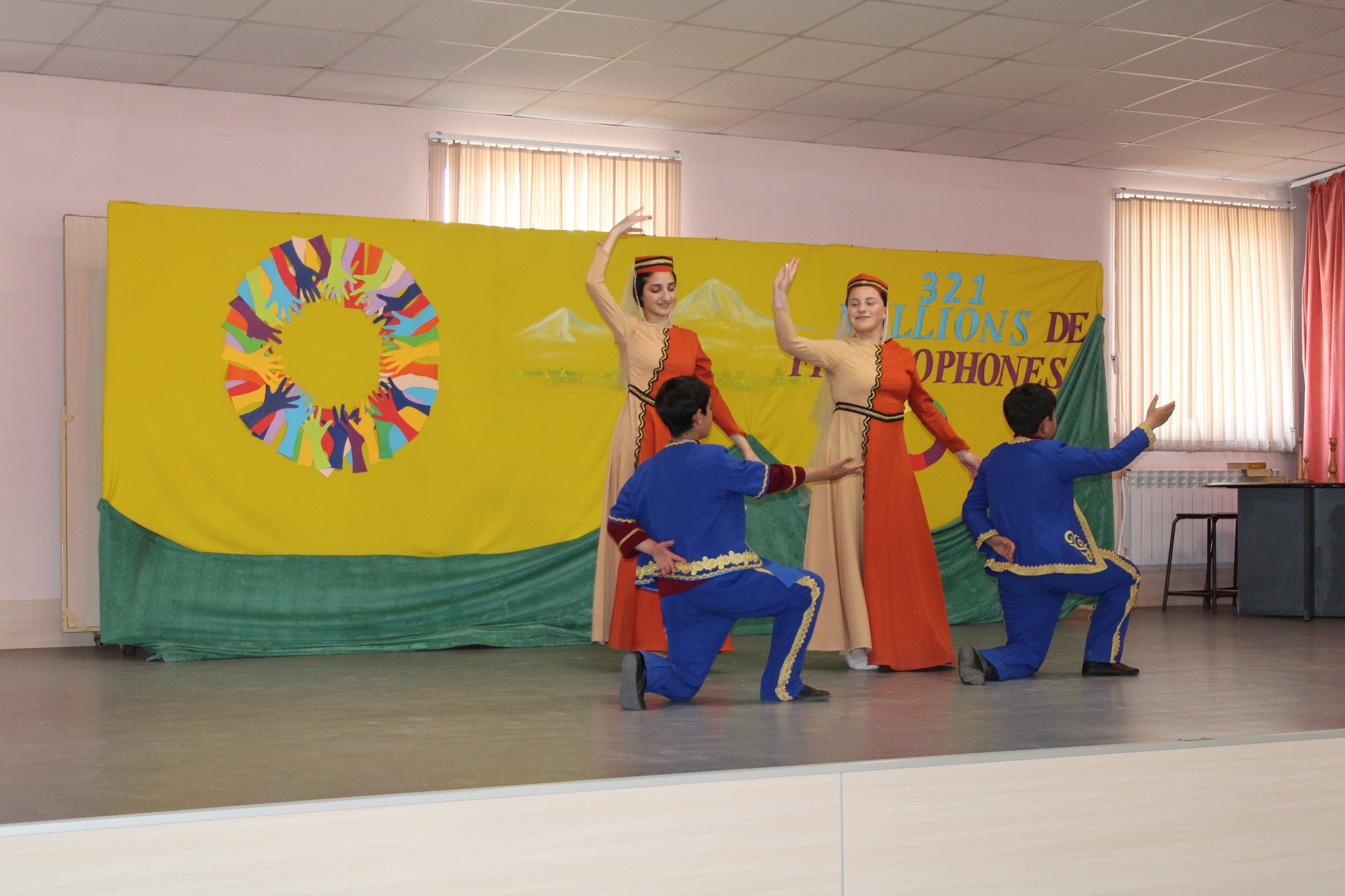 Les performances musicales et chorégraphiques des élèves du centre, les citations en langues étrangères, l'histoire des souvenirs de la famille du chanteur-compositeur franco-arménien Charles Aznavour et la mise en scène bilingue attestant de son héritage littéraire ont impressionné le public.