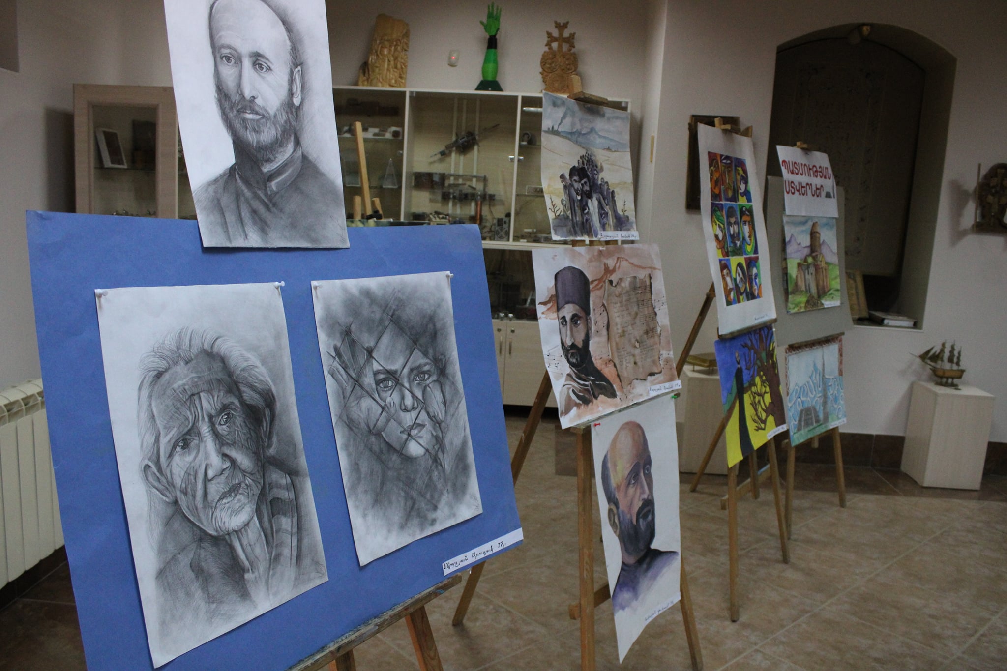 Exposition intitulée "Des ombres de l'histoire" ․ Auteurs des œuvres : élèves des ateliers de peinture et de miniature. Enseignants: Arthur Mouradian, Vardevar Chamamian 25/04/2022