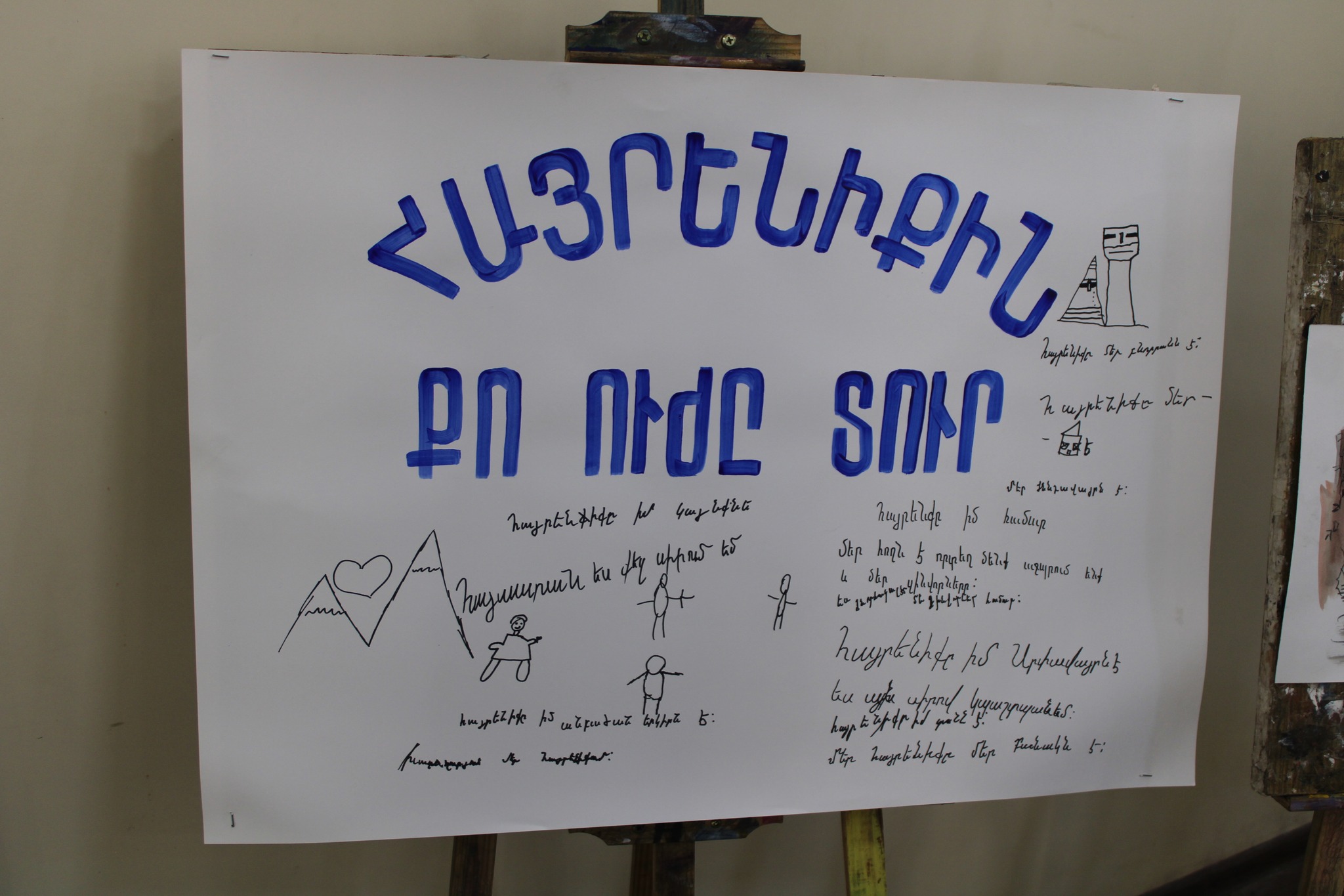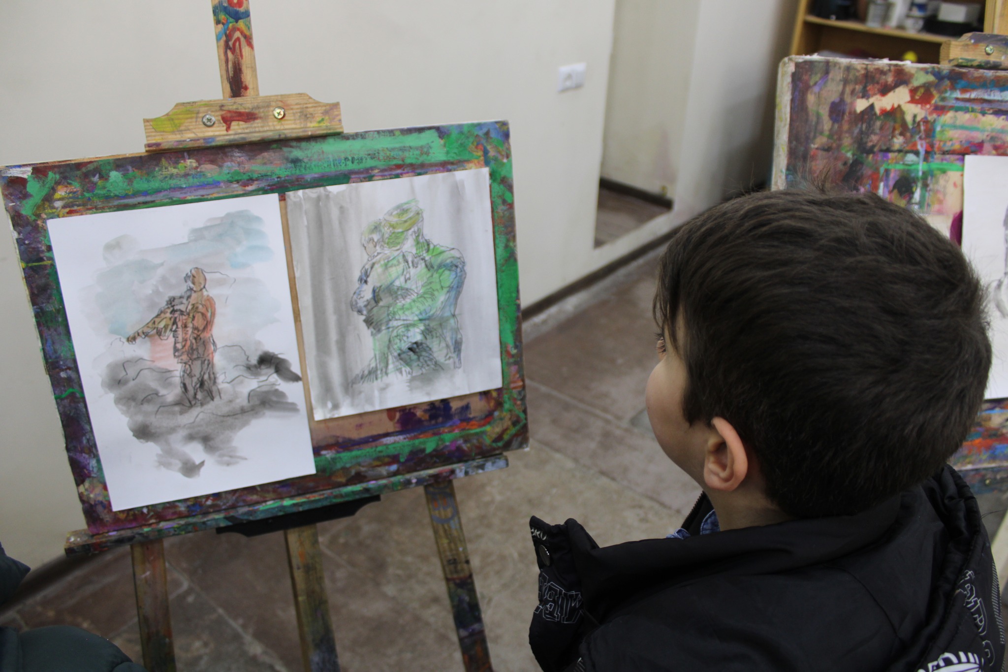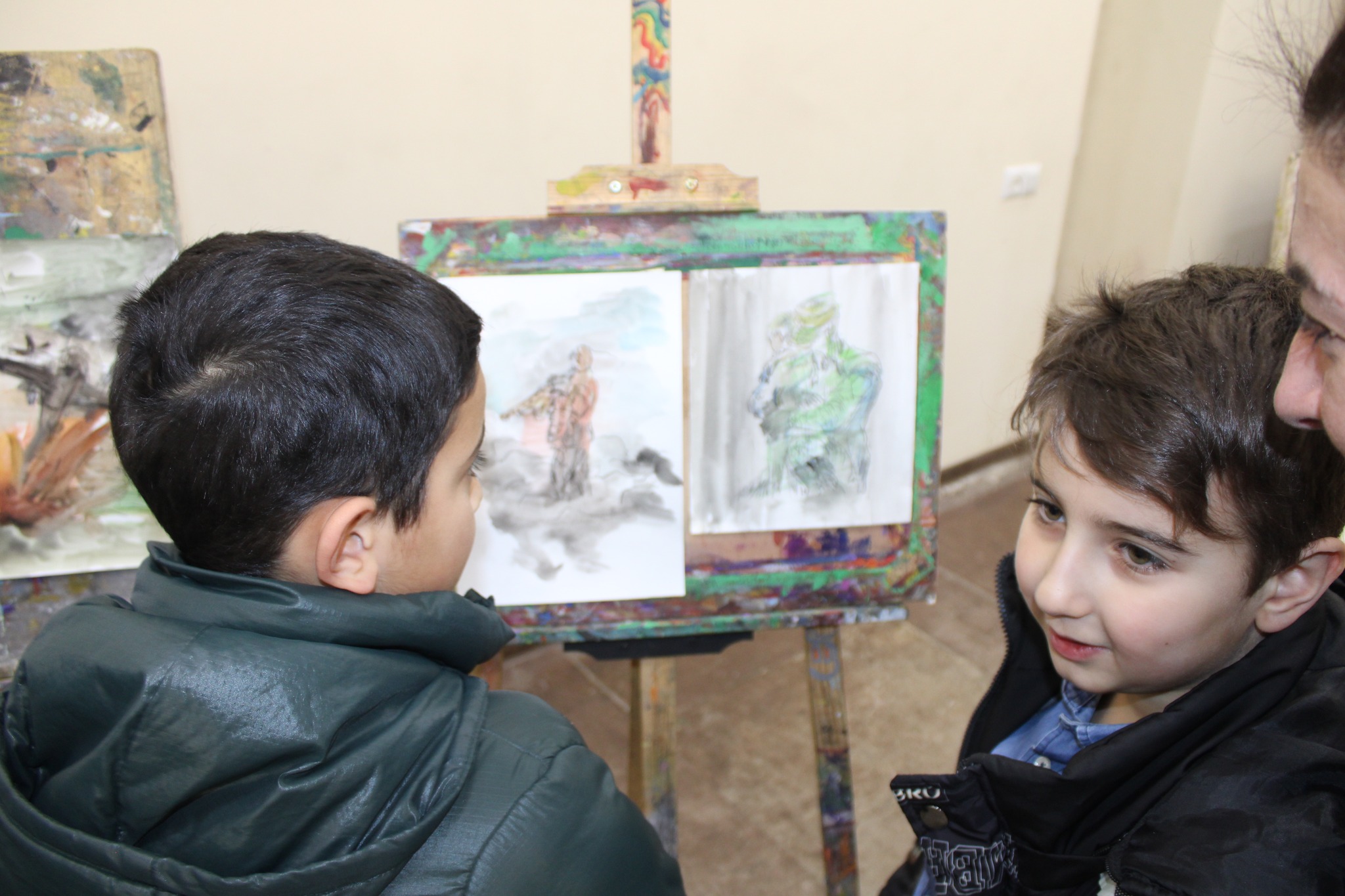 Les élèves des ateliers de peinture et de poterie, dirigés par Benjamin Poghossian, ont présenté les héros qui ont sacrifié leur vie pour la patrie lors de la guerre de 44 jours du Haut-Karabakh, leurs exploits, ainsi que les récits héroïques des soldats blessés au combat. Le responsable de l’atelier Benjamin Poghossian, qui a également participé à la guerre de 44 jours, a créé une série de portraits de ses compagnons d'armes péris, intitulée "Les présents éternels". À côté de ces œuvres, les élèves ont exposé leurs créations artistiques représentant des conceptions de la patrie et de l'image du soldat arménien.