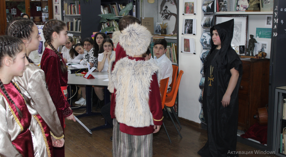 Les élèves de l’atelier d'art de théâtre ont rempli l'atmosphère littéraire de souffle de Toumanian, ont présenté au public la représentation du conte "Mardi Gras" du brillant poète Hovhannes Toumanian. Les adolescents ont lu les œuvres des écrivains arméniens, la littérature moderne, ont échangé des idées littéraires et, bien sûr, grâce au symbolique de la journée, ils se sont offerts des livres intéressants. Le jour du don d'un livre a également pour but d'hériter de l'amour et du culte des livres à la nouvelle génération transmis depuis des siècles.
