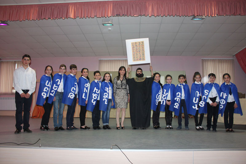 Les élèves du cercle d’anglais ont présenté en bref l’histoire du développement de la langue arménienne et ont parlé fièrement de la langue arménienne, qu’ils ont héritée de leurs ancêtres. En présentant simultanément le diaporama les élèves ont traduit les pensées des personnes arméniennes et étrangères sur la langue arménienne. Les élèves demandaient de garder la langue arménienne ʺimmaculéeʺ, car comme la patrie, la langue aussi a besoin de la défense quotidienne.
