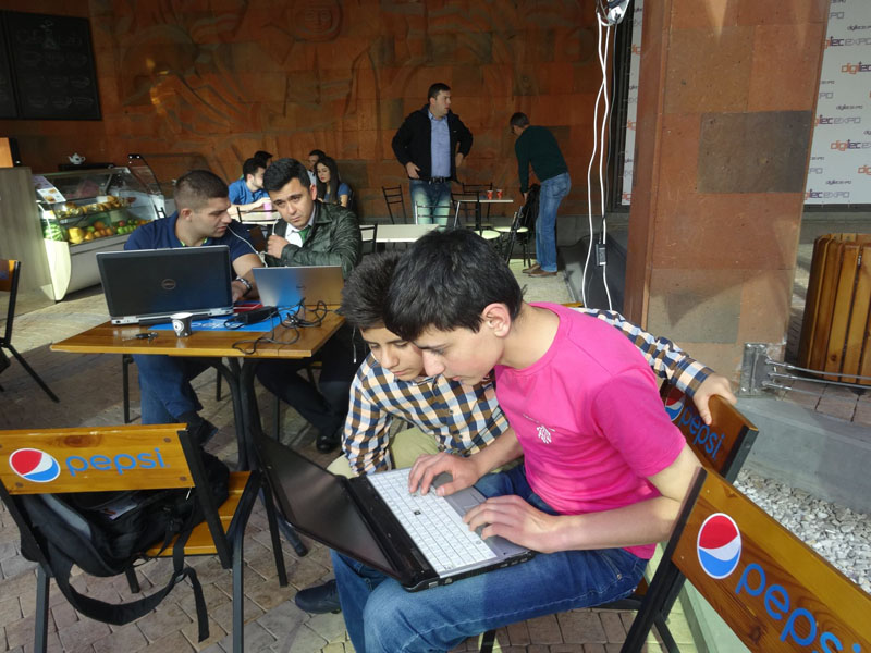 Les élèves du centre se sont présentés par de différents dispositifs: régulateur des systèmes de l’énergie solaire, robot cherchant des mines, générateur des fréquentations, système de signal. Le but de la performance était de créer un milieu favorable de communication entre les sociétés  du domaine informatique, les consommateurs et la société, prendre connaissance de la nature réelle du champ des technologies de télécommunication et informatiques arméniens, des acquisitions et des perspectives.