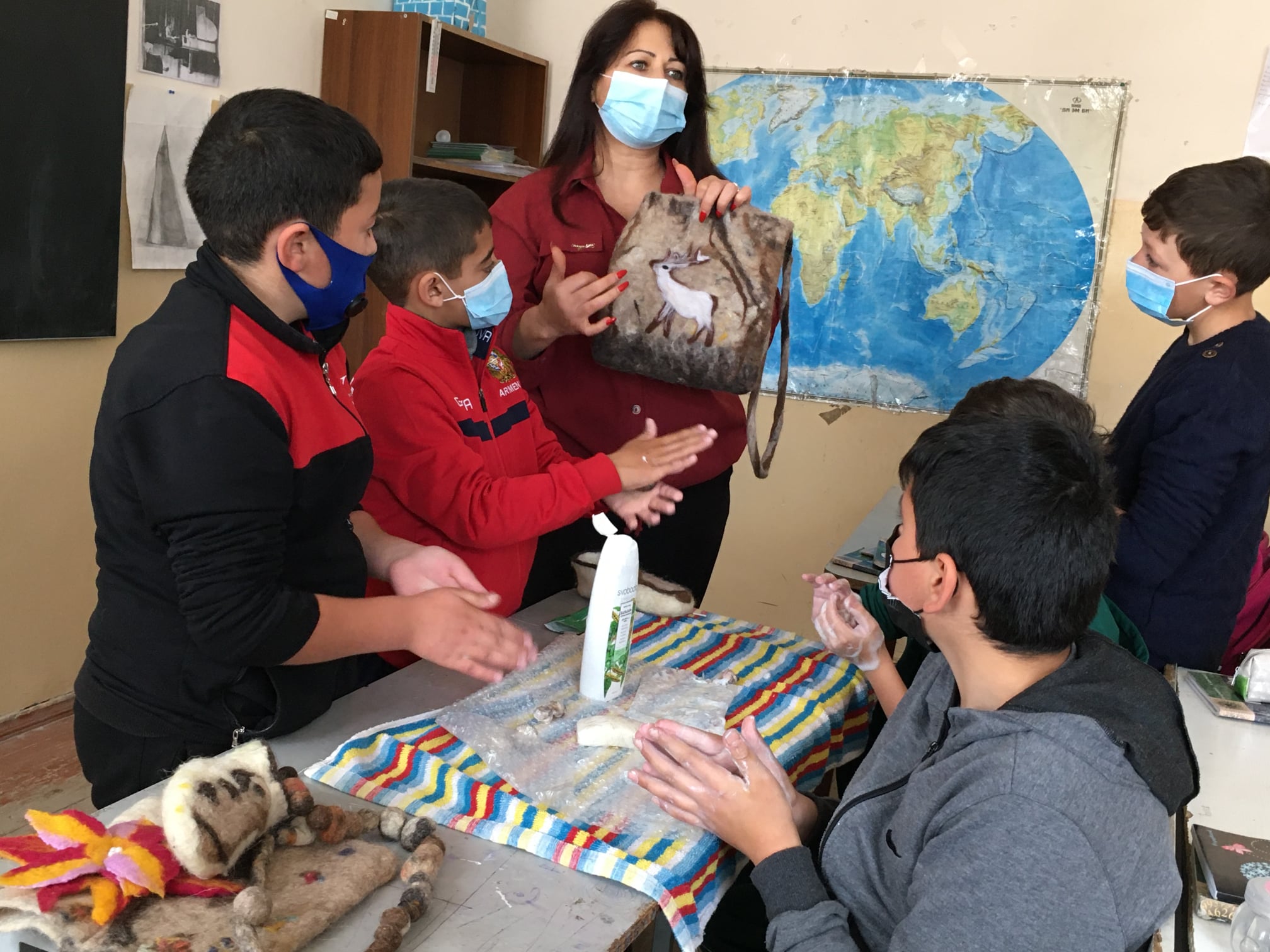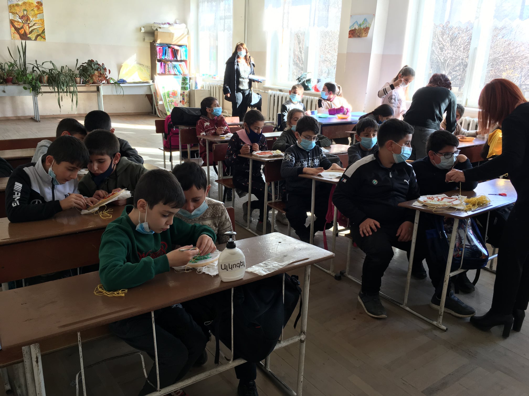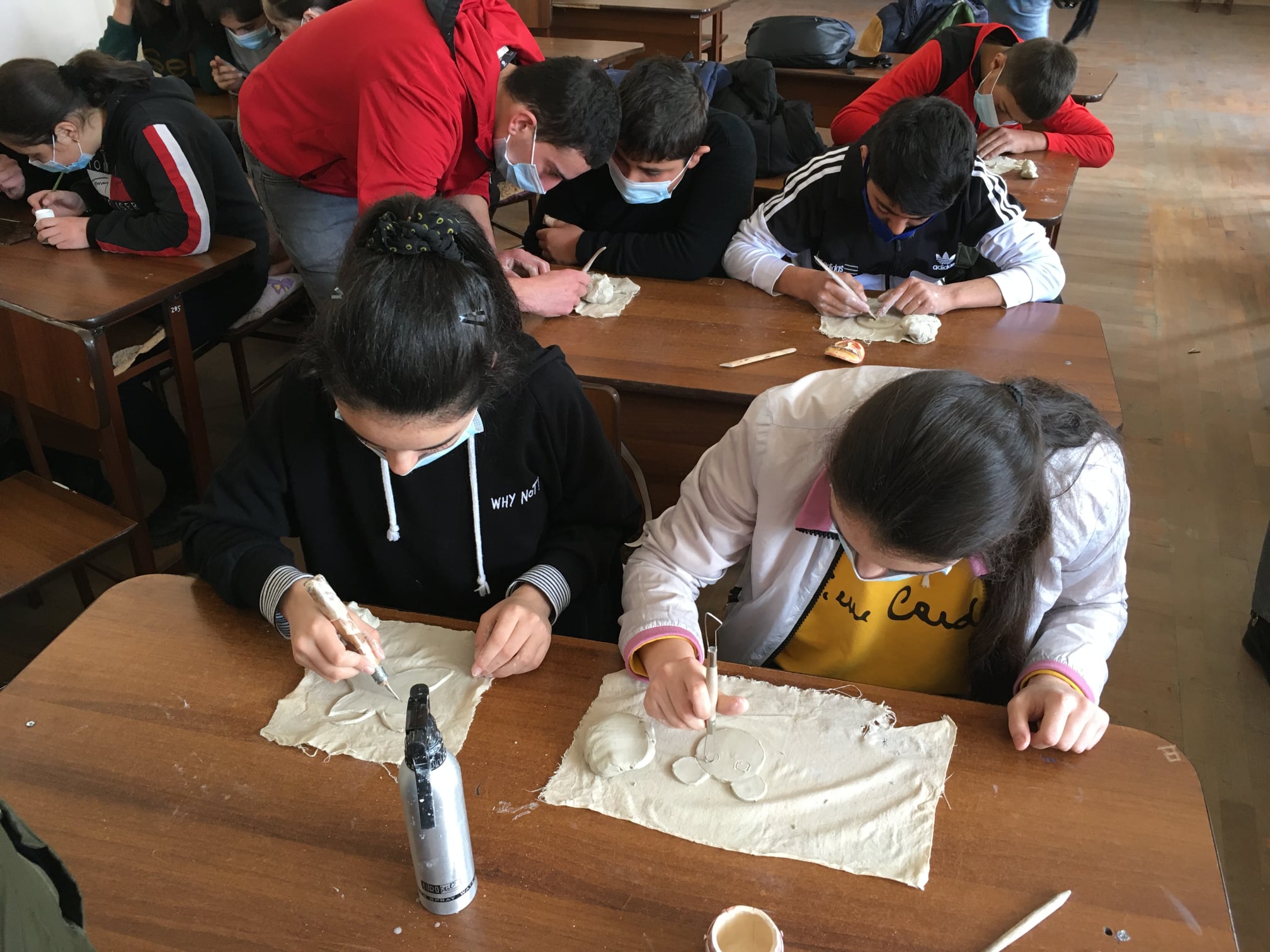Les enseignants expérimentés du centre ʺEntanikʺdes ateliers de fabrication de perles, de broderie, de tissage, d’art de la tapisserie, de miniature, de peinture sur verre, de poterie et de danse ont réalisé des cours de perfection pour les adolescents d’Amassia, en commençant par l’introduction des histoires des branches anciennes d’art et d’artisanat. Tous les cours de perfection organisés par les ateliers du centre créatif pour enfants ʺEntanikʺ se passent toujours avec des approches intéressantes et variées. Ces cours de perfection ont également pour but de contribuer à l'orientation professionnelle d’art et d’artisanat de la part du centre pour les adolescents des établissements éducatifs et culturels des communes. Grâce au travail professionnel des enseignants, non seulement les adolescents, mais aussi les enseignants des établissements éducatifs et culturels ont participé avec beaucoup d'enthousiasme aux travaux pratiques des masters class. Les élèves doués des ateliers du centre, à leur tour, ont transmis aux enfants de leur âge leurs connaissances acquises au centre. Encore une journée du centre créatif pour enfants ʺEntanikʺ s’est passée par la présentation des valeurs nationales aux adolescents à travers l’éducation extrascolaire.
