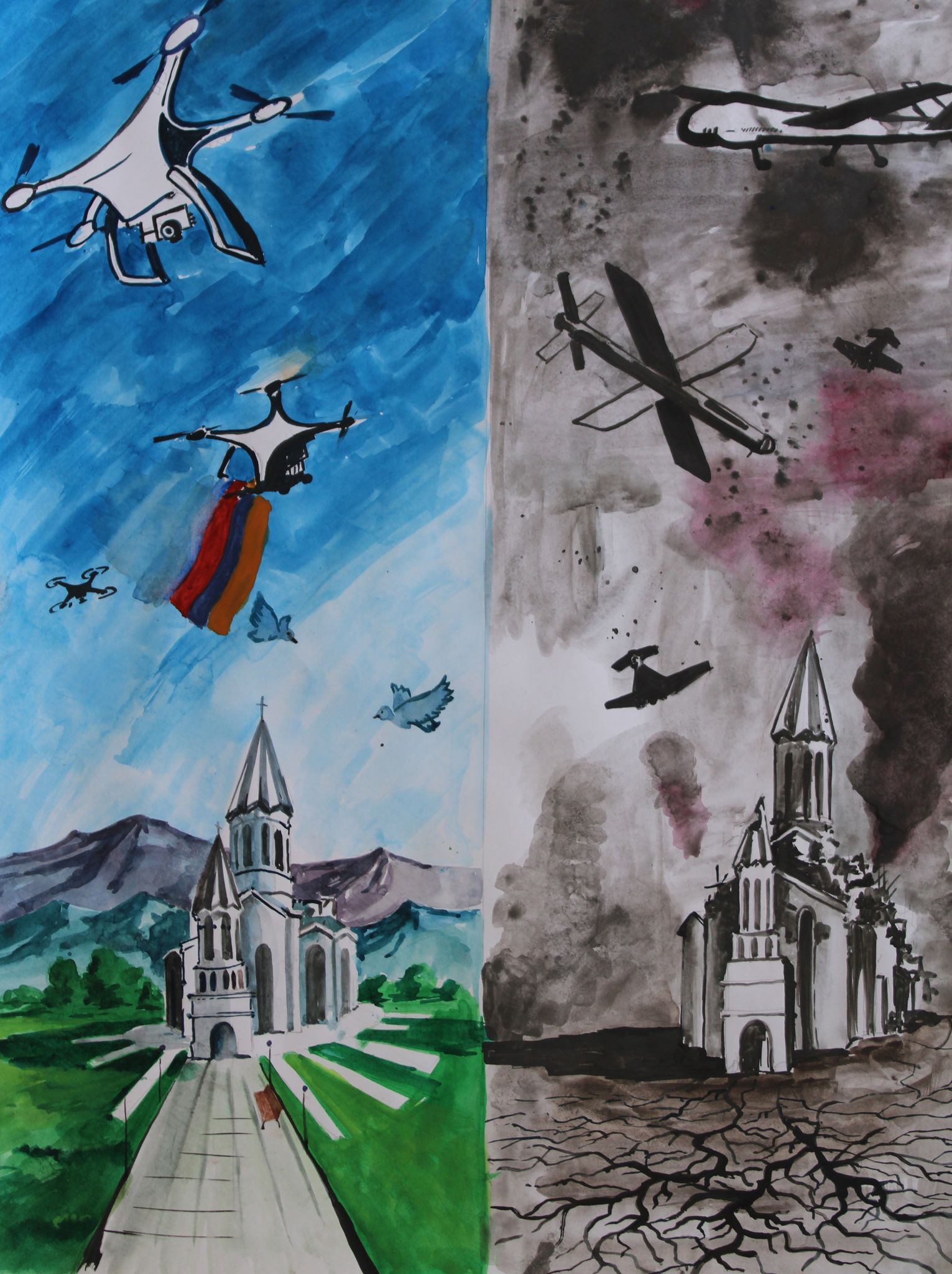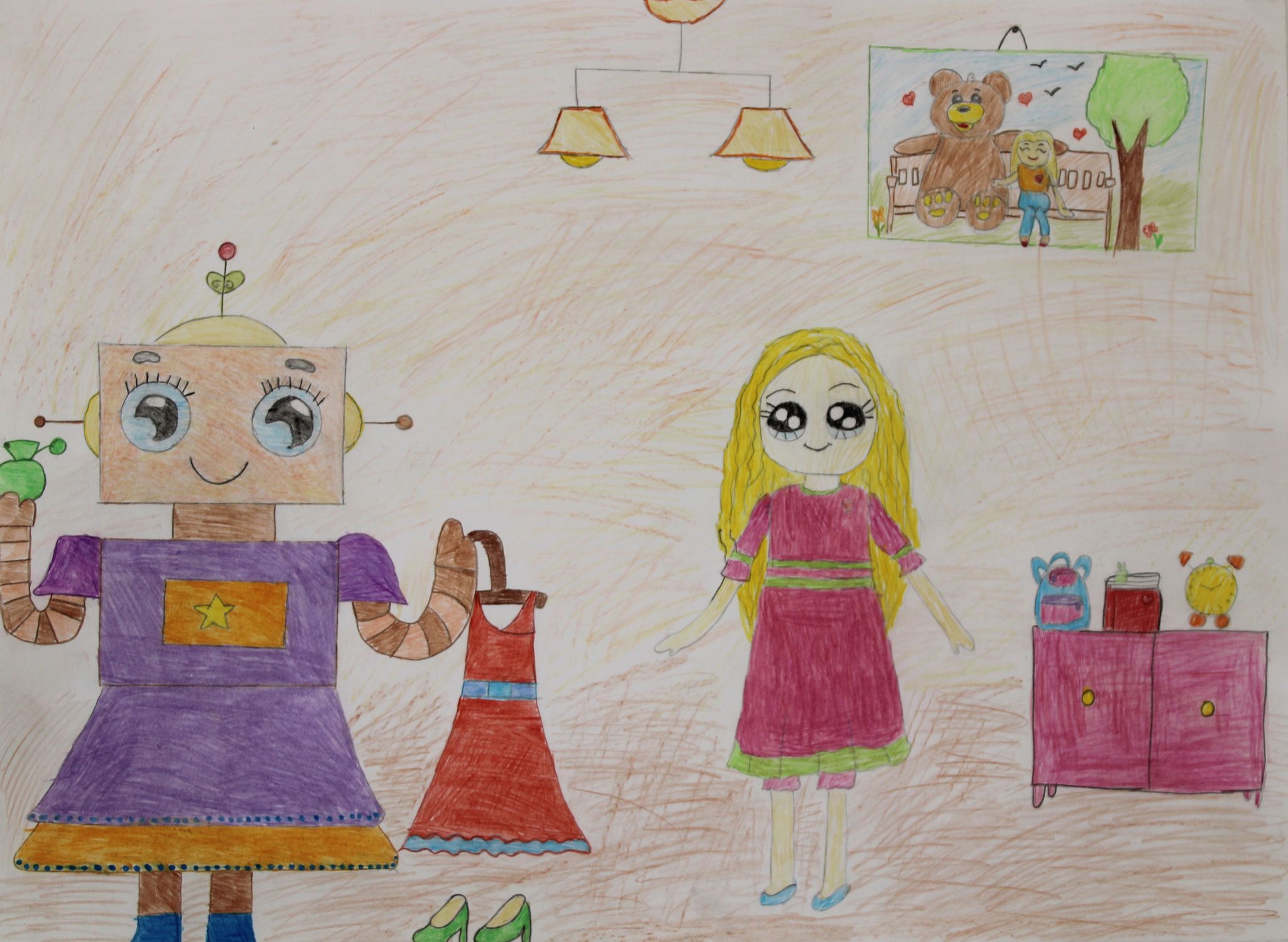 Anahite Manukian, coordinatrice des ateliers d'arts décoratifs appliqués du centre, présente les travaux du concours. Les travaux envoyés sont des robots qui aident les gens, en particulier l’œuvre présentée par l’atelier de batik nettoie l’environnement, celle de l’atelier de quilling s’occupe des fleurs, celle de l’atelier de peinture sur verre nourrit les animaux affamés, l’œuvre de l’atelier de gravure sur bois développe l'intellect des enfants, l’œuvre de l’atelier de couture s’occupe des enfants, celle de tissage de tapis présente un fileur de laine, l’œuvre de l’atelier d'orfèvrerie trouve les mines, celle de l’atelier de poterie est un robot-policier qui aide les gensʺ.