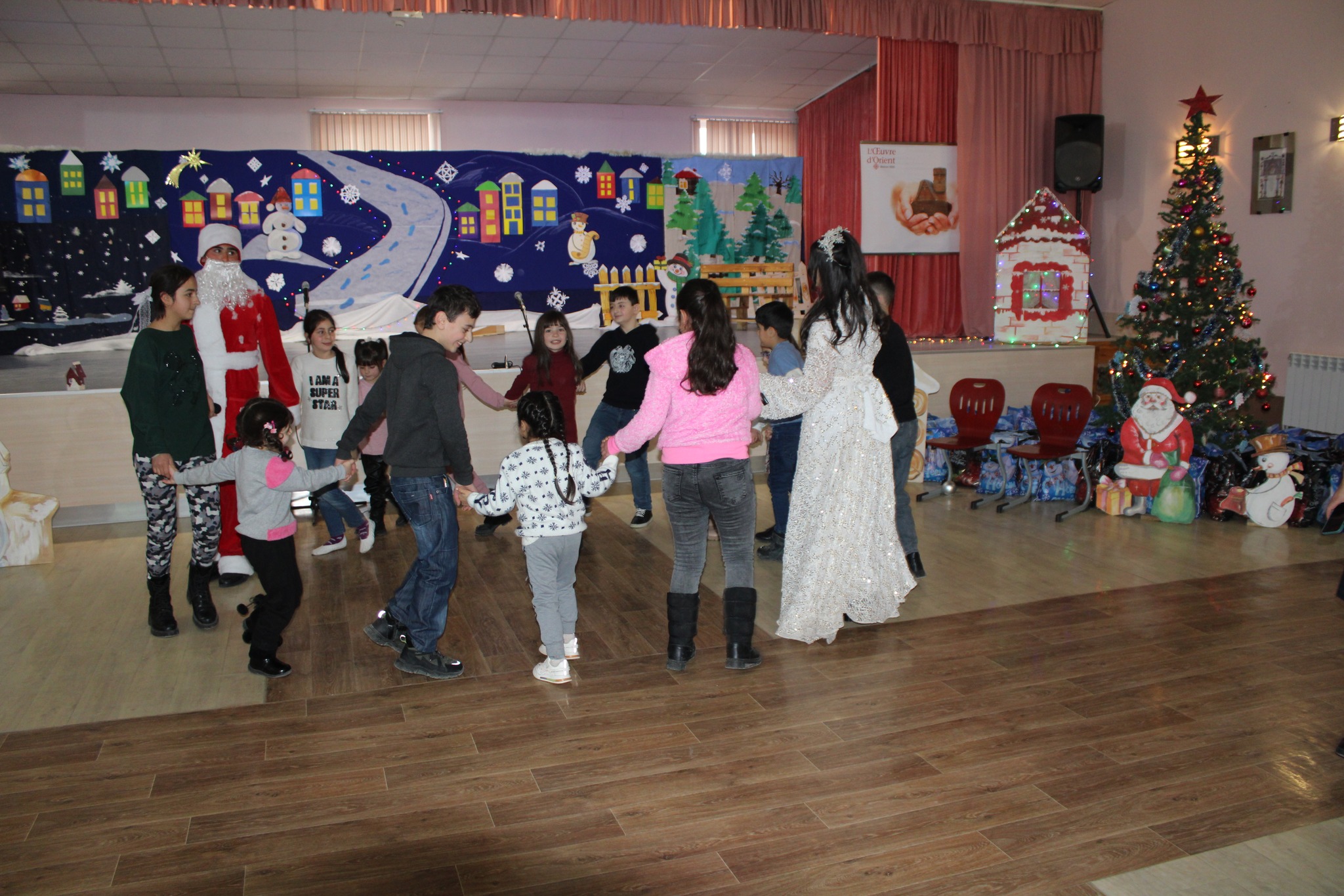 Cette année aussi, avec le soutien de l'association française Œuvre d'Orient, le centre «Entanik»a organisé une belle fête dédiée au Noël et au Nouvel An. Des enfants de familles déplacées d'Artsakh, des participants à la guerre, des orphelins à cause de la guerre et des enfants des familles socialement défavorisées y ont participé. L'événement a commencé par la prière, le prêtre a béni toutes les personnes présentes, on a parlé sur le conseil de Noël, de bons vœux ont été entendus de la bouche innocente des enfants. Comme prévu, l'espoir et le souhait les plus chers des enfants pour tous les enfants du monde étaient qu'ils vivent en paix.