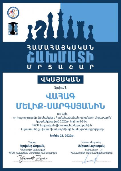 29/06/2020 ![]() Vahag Melik-Sargssian, élève de l’atelier d'échecs du centre créatif pour enfants "Entanik", a réussi au premier tournoi d'échecs... Read more |