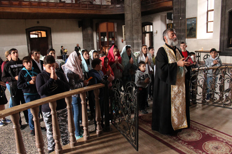 L’excursion cognitive organisée vers la cathédrale Haridj était impressionnante et inoubliable pour les adolescents. Le complexe monastique comme trésor de l’architecture médiévale, a séduit les participants par sa construction luxueuse. La communion religieuse a continué dans l’église Saint ʺSept Plaiesʺ de Gumri où les enfants ont reçu la bénédiction du prêtre Aleksandrain ter Hovhanness et leur prière unie s’est élevé vers Dieu.