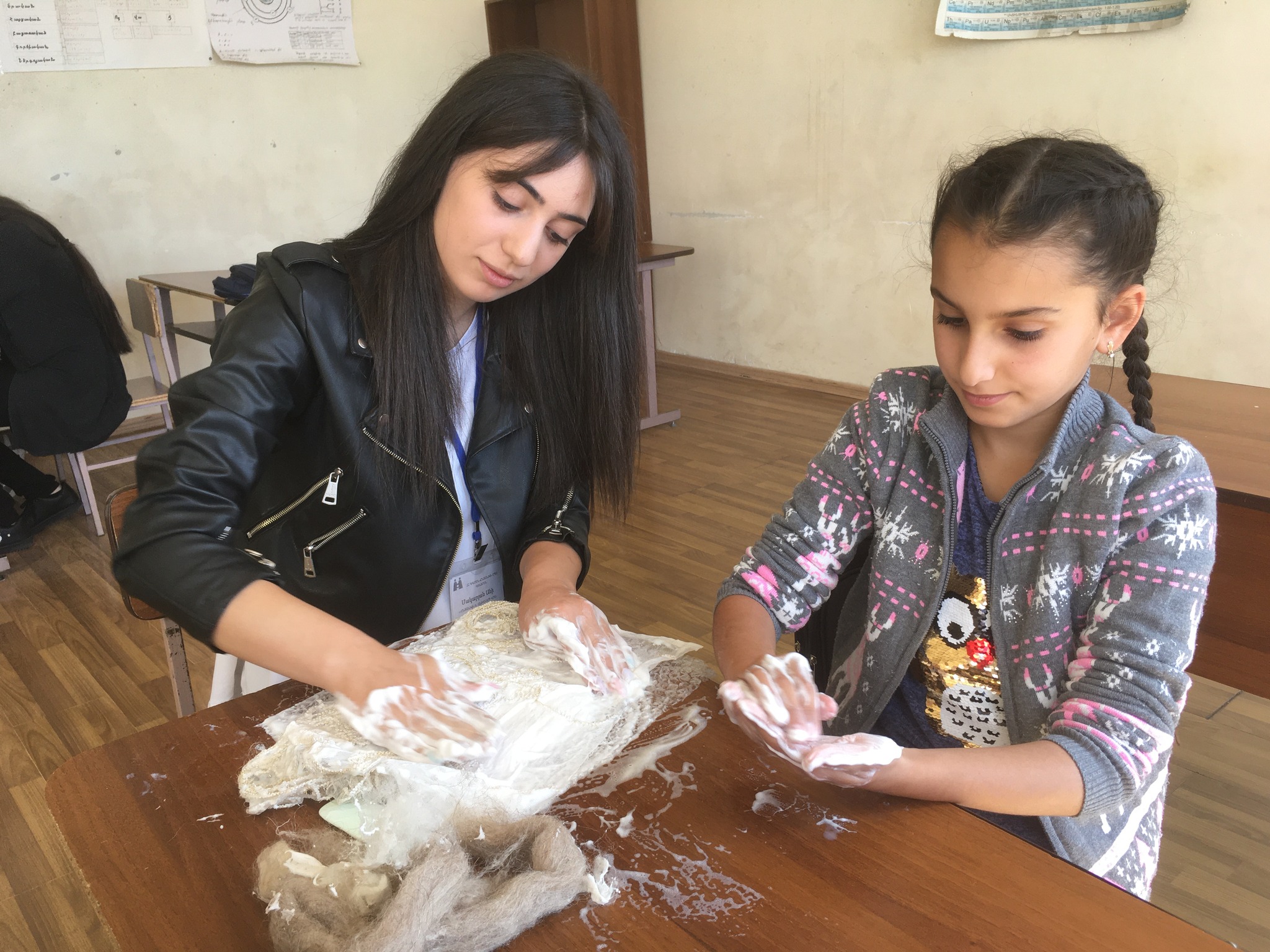 Le centre créatif pour enfants "Entanik" continue d'organiser des cours d'orientation professionnelle dans les communautés frontalières et montagneuses. L’étape suivante des cours d'orientation professionnelle était dans la communauté Sizavète de la région d'Achotsk.