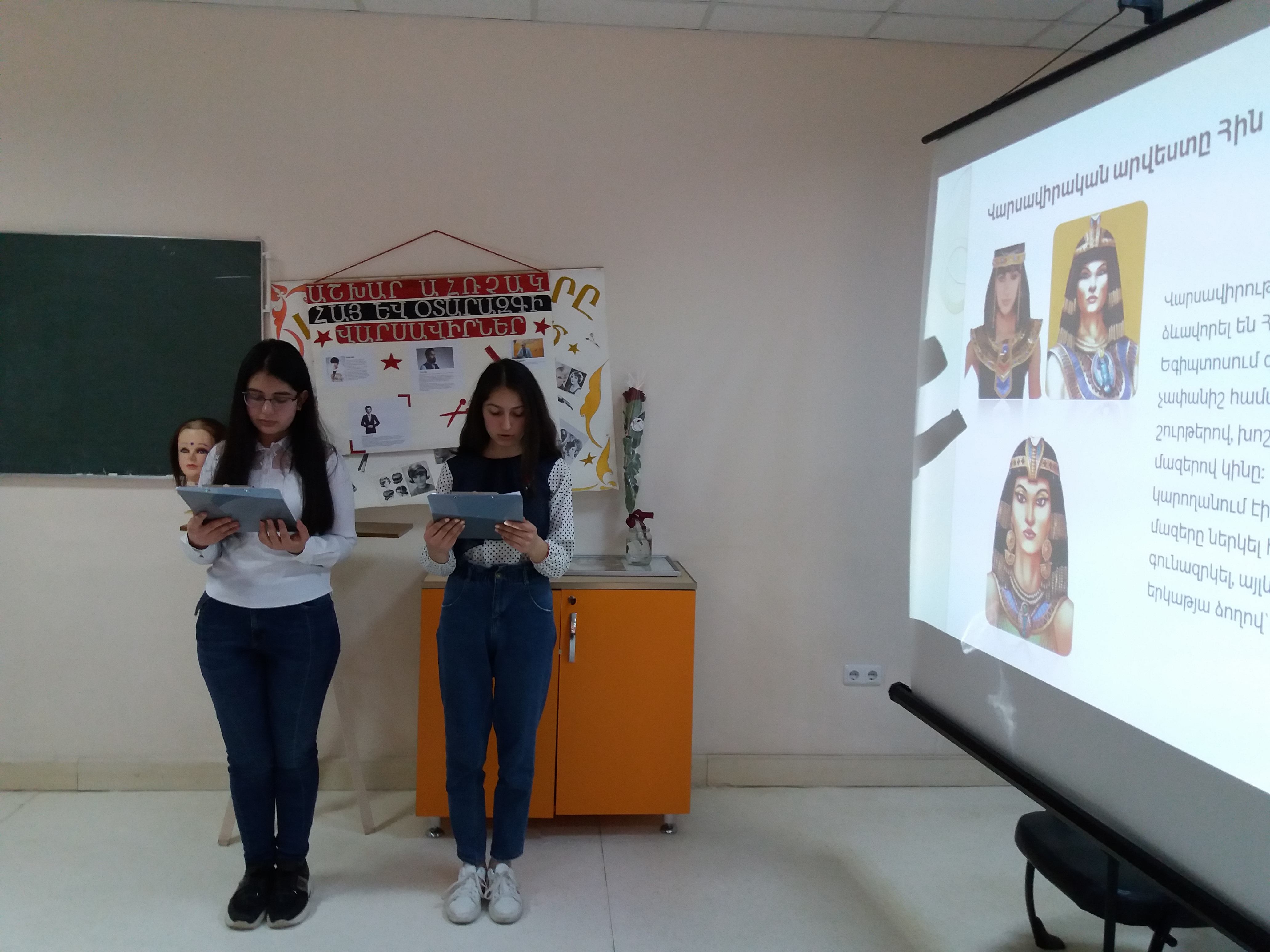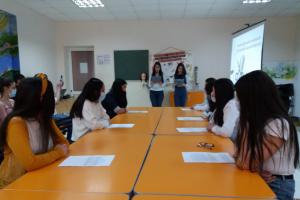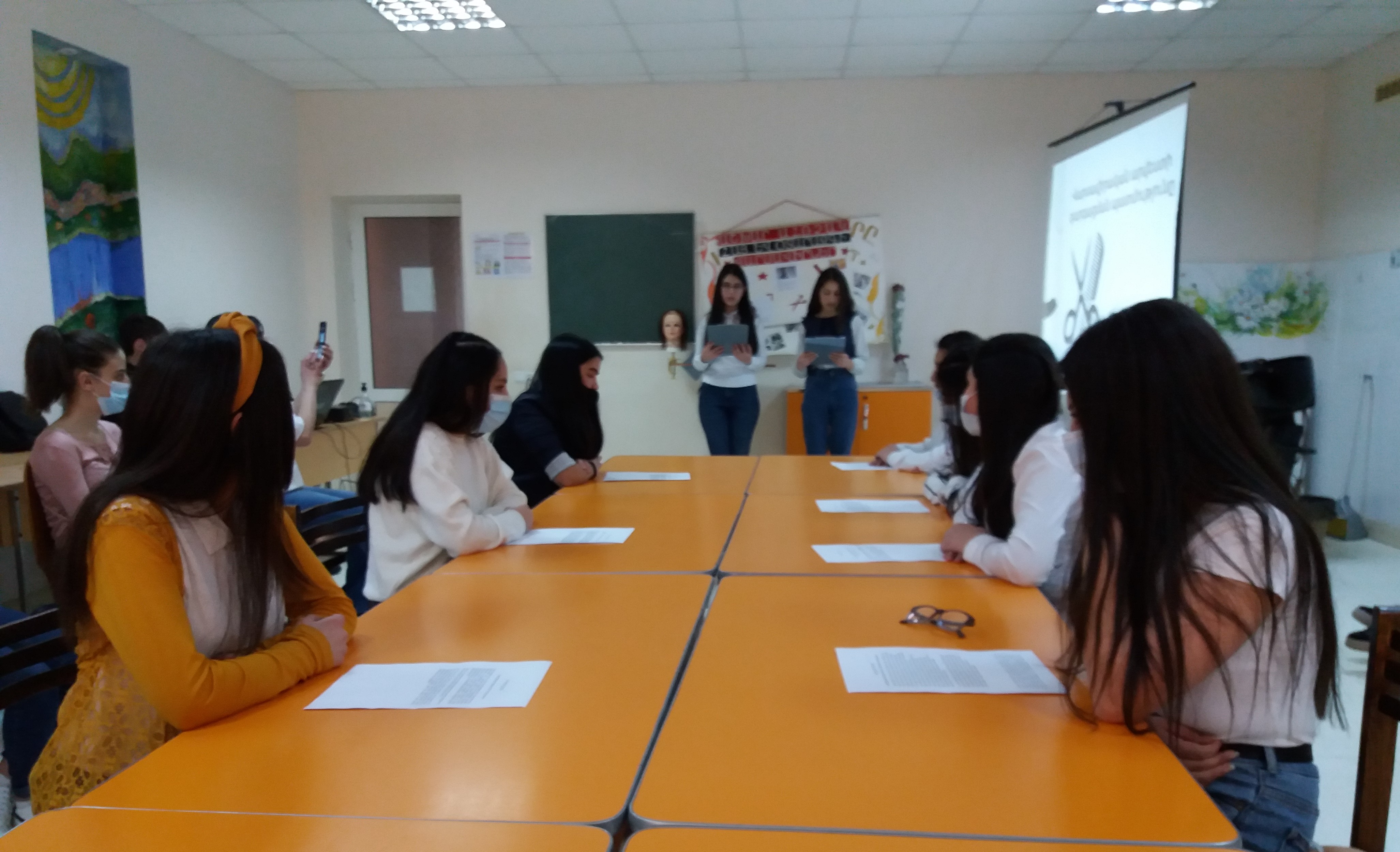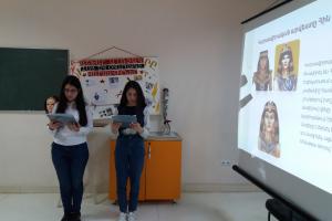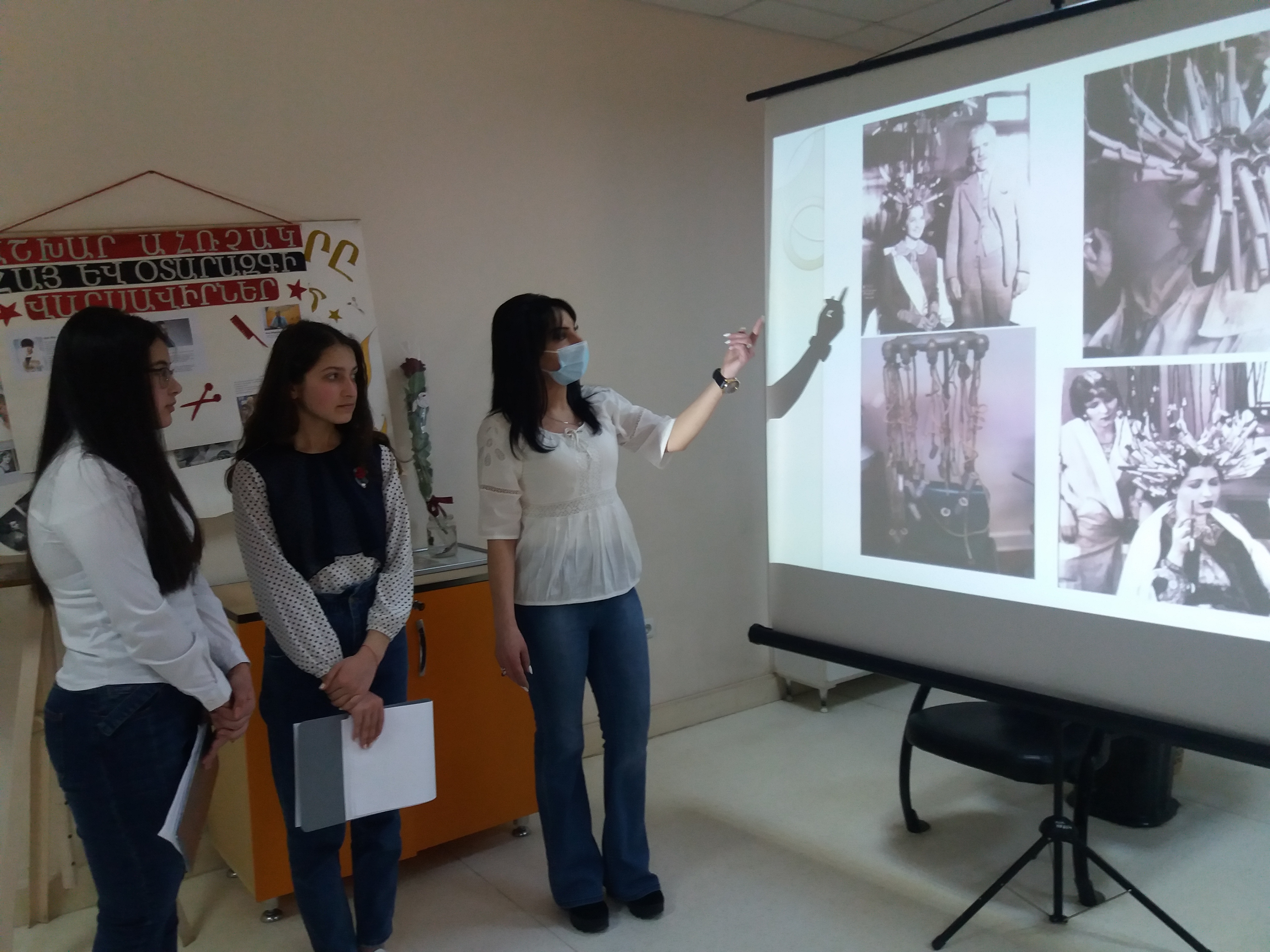 Les élèves de l’atelier d’art de la coiffure du centre et l’enseignante Nina Yayloyan ont présenté des informations intéressantes et complètes sur les normes de coiffure et de beauté. Les participants ont reçu plein d'informations sur les idées dominantes de la beauté et des coiffures, qui sont devenues plus vivantes à travers les images et les vidéos présentées en diaporama.