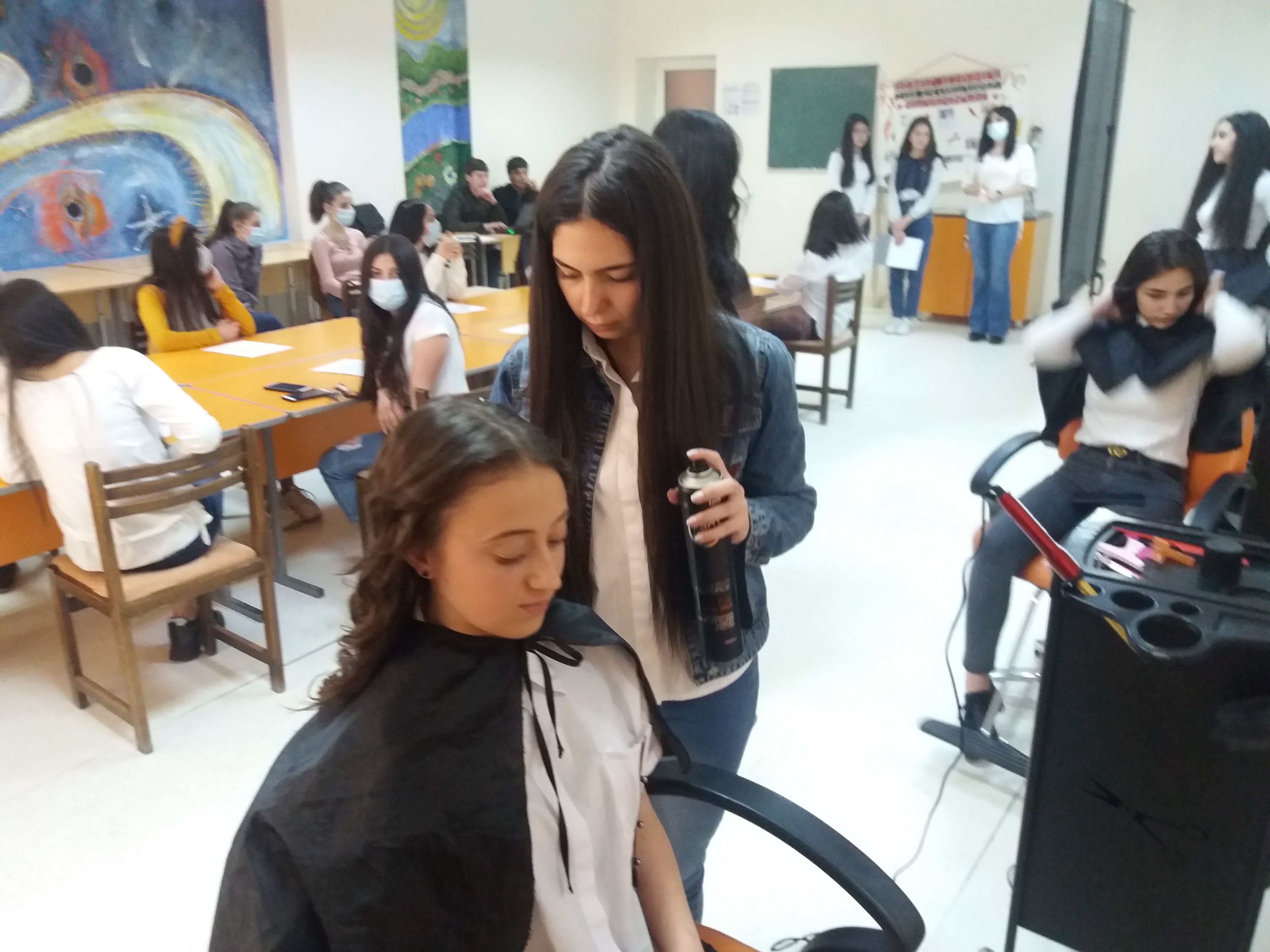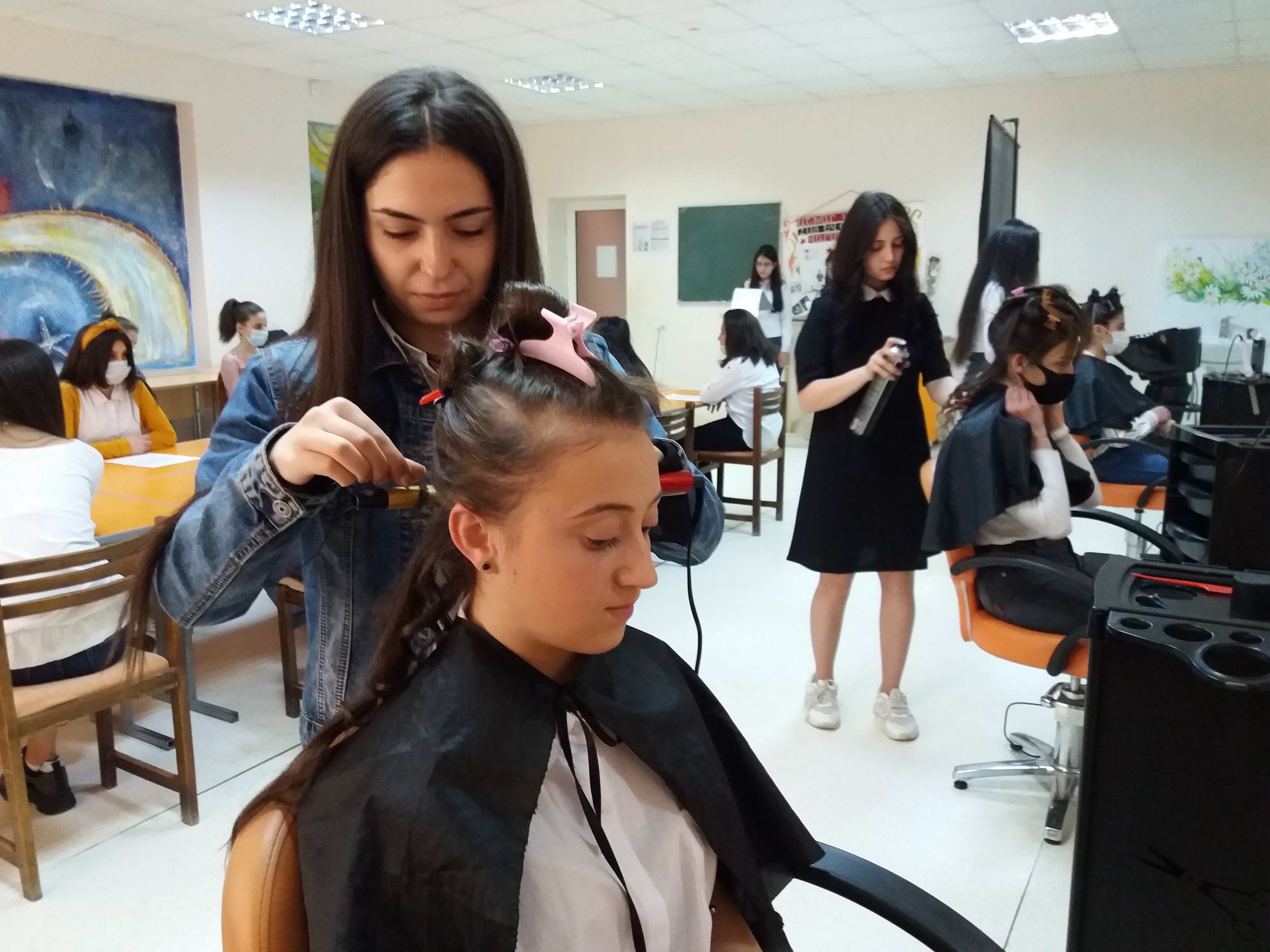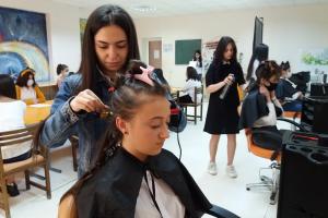 Certains élèves ont réalisé des travaux pratiques, en faisant des coiffures.